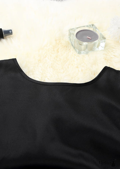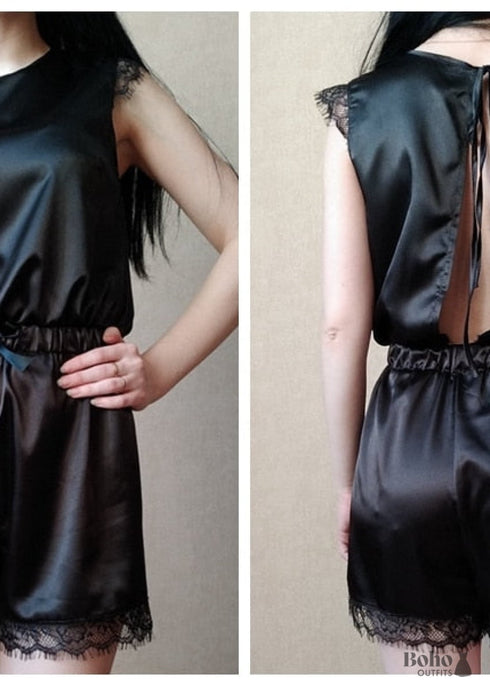 Women's Chic Boho Sleepwear, Pajamas Set, PJ Satin Jeanne Black and Pink